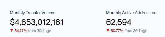 转账规模和活跃地址数较上个月都是断崖式下滑。
