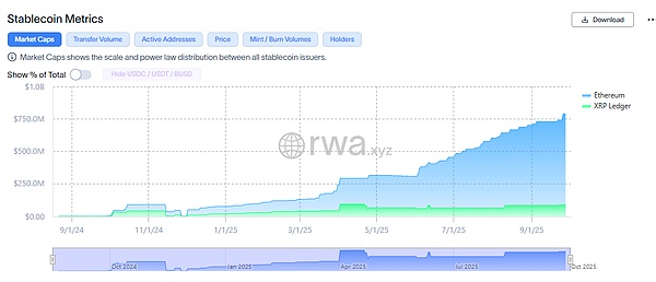 在这段时间,瑞波的$RLUSD也是在抓紧上量,虽然涨势还可以,但是市值也还是比较感人,只有不到8亿。