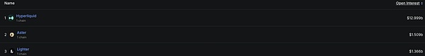 但是另一方面,Lighter的未平仓合约总额(Open Interest)相对偏低。目前Lighter的OI约在13亿美元左右,比Hyperliquid的130亿美元少了一个数量级,也低于Aster近期15亿美元的水平。高交易量、低OI暗示Lighter、Aster两个新晋热门平台存在大量短线频繁对倒交易行为,笔者将在后文风险部分对此剖析。