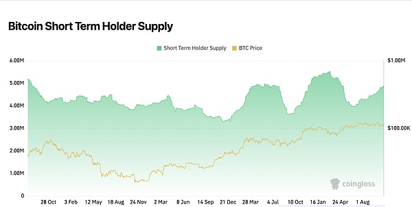 BTC转入交易所数量环比上升幅度不大,说明尚未出现系统性抛压。长手行为仍属结构性再平衡,而非趋势性出逃。